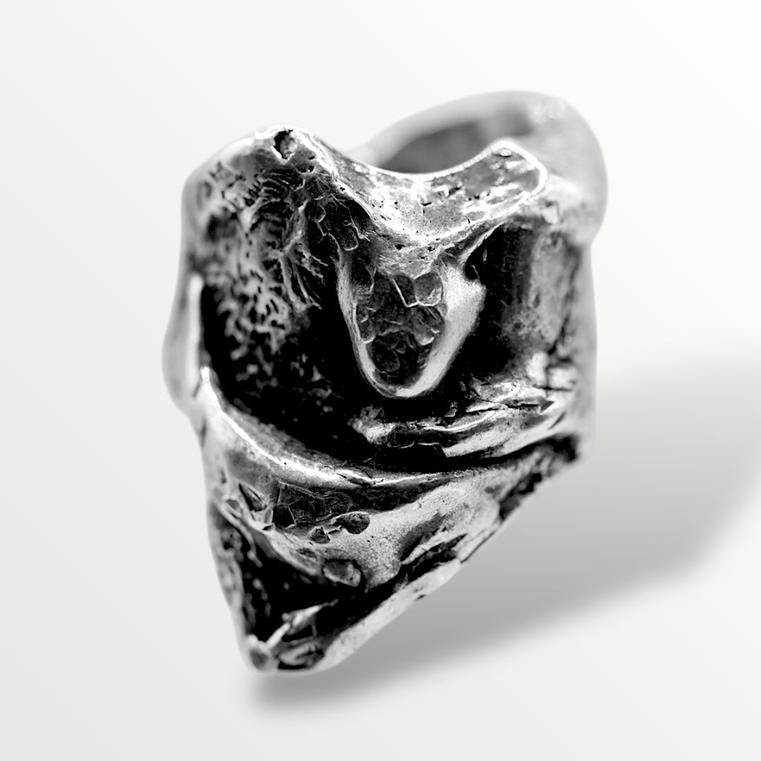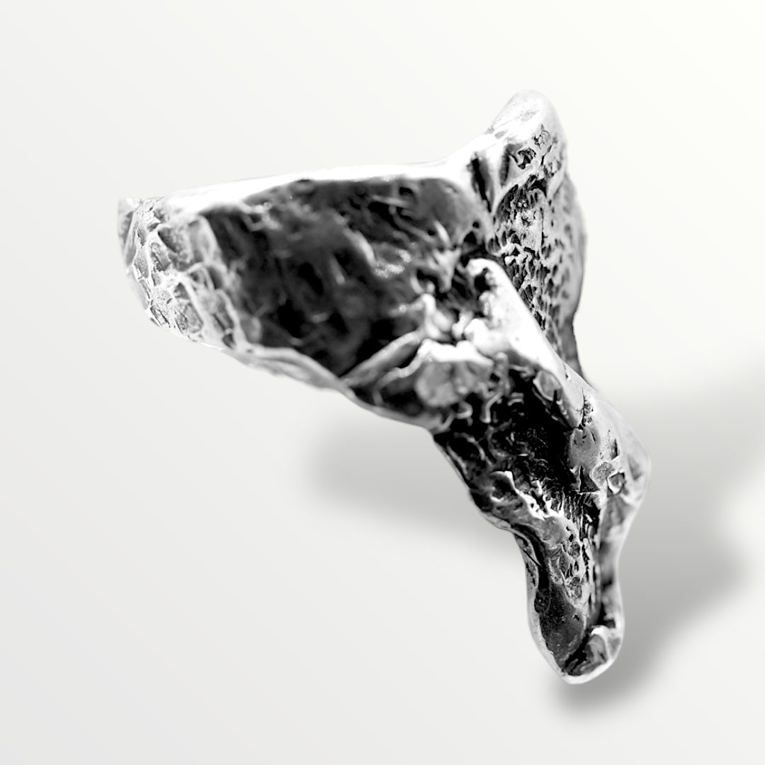 Pulled from the concept archive and reshaped by hand, Dredge has been stripped down to its core elements—raw silver, weight, texture, presence. Sculpted in oxidized .925 sterling, it now exists as a wearable artifact: grounded, brutalist, and emotionally precise.
