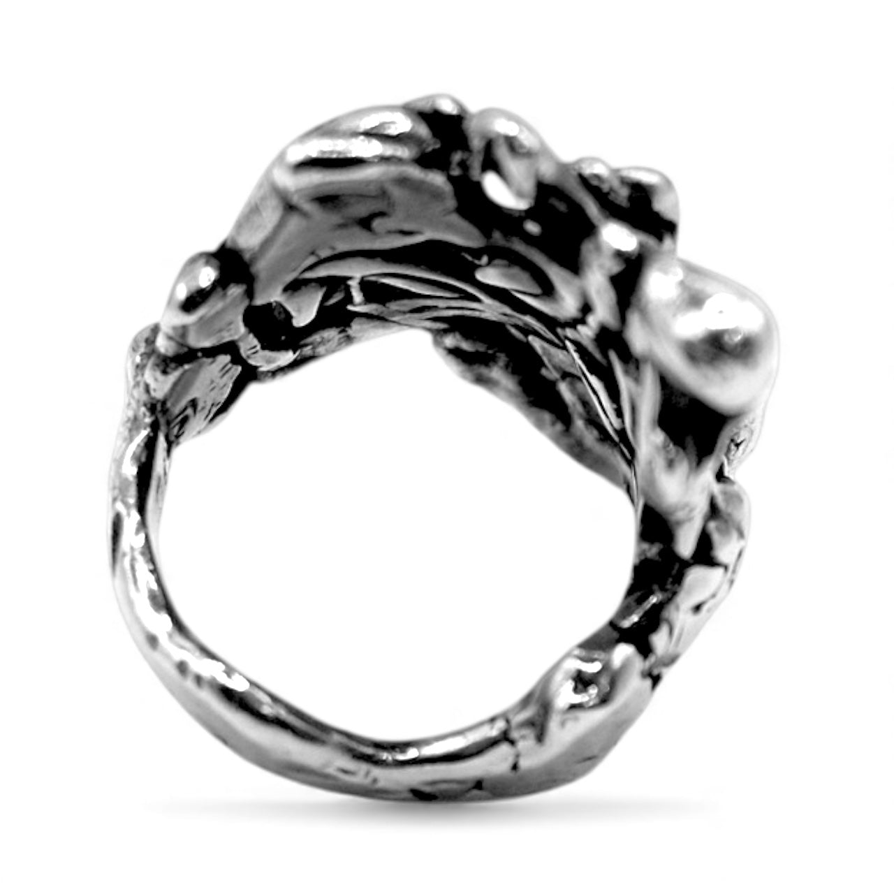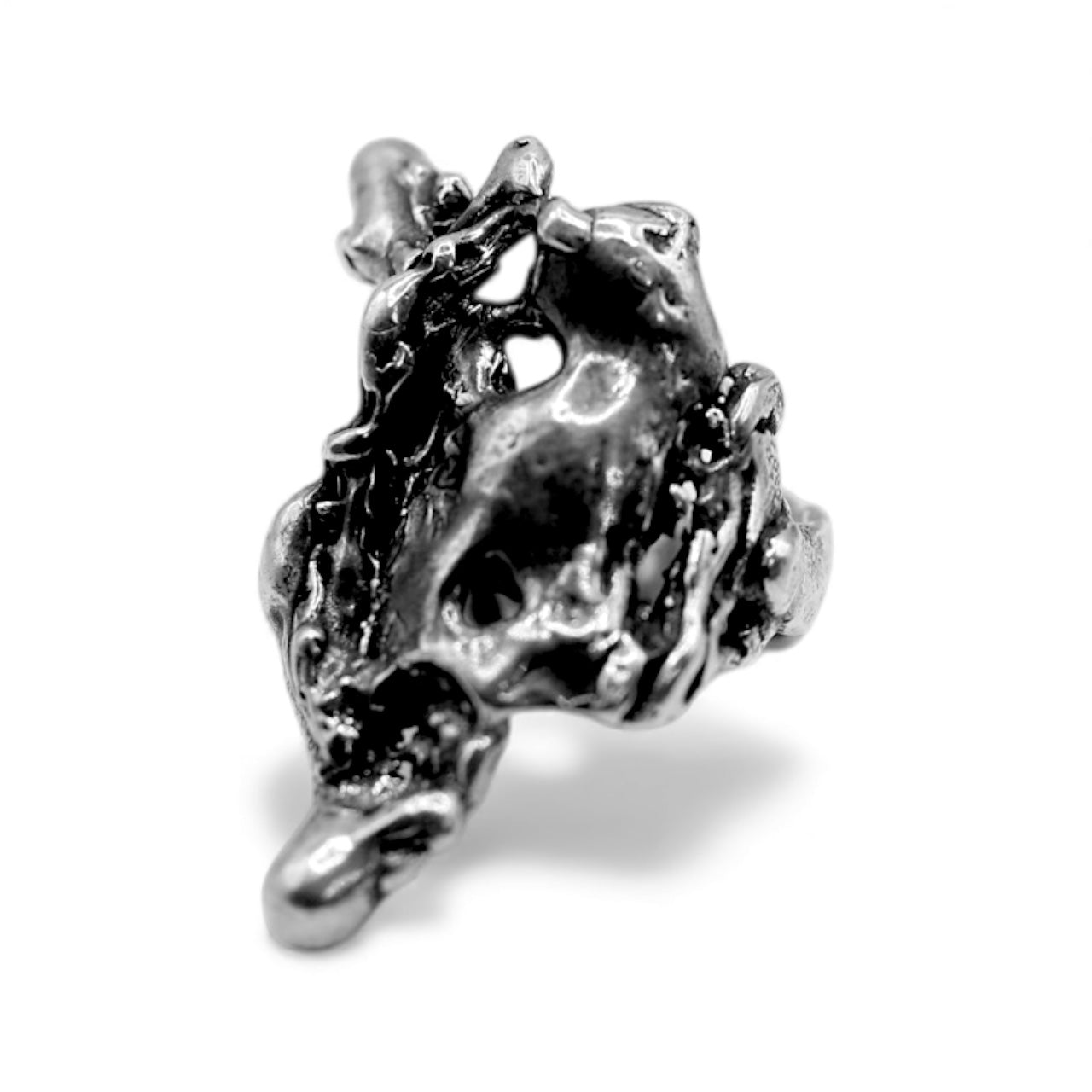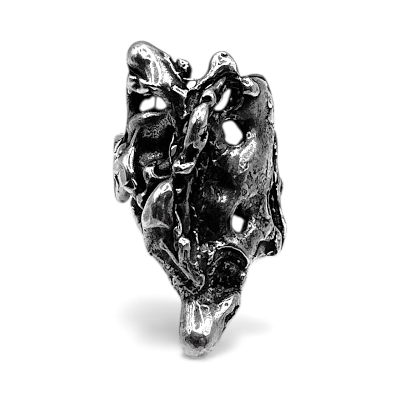 This version is entirely new—but it carries the ghost of the original inside it. A molten, brutalist sculpture forged from the remnants of another vision. Crafted in oxidized .925 sterling silver, the Revise Ring is a wearable relic of creative destruction—proof that breaking something apart is sometimes the only way to find what it was meant to become.
