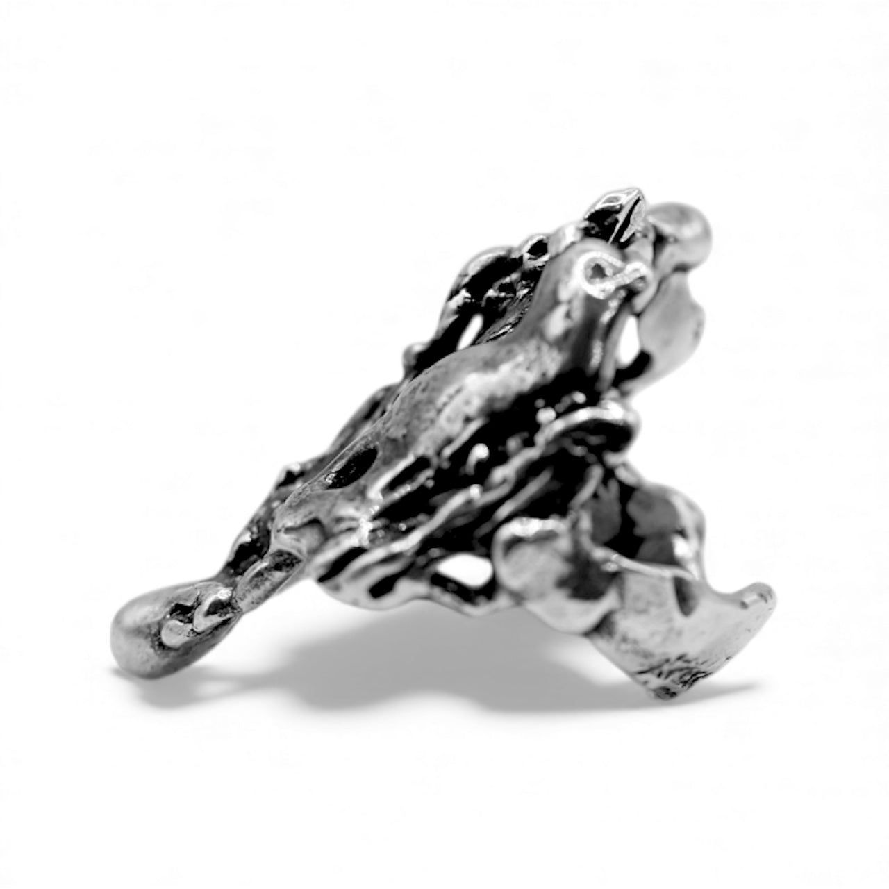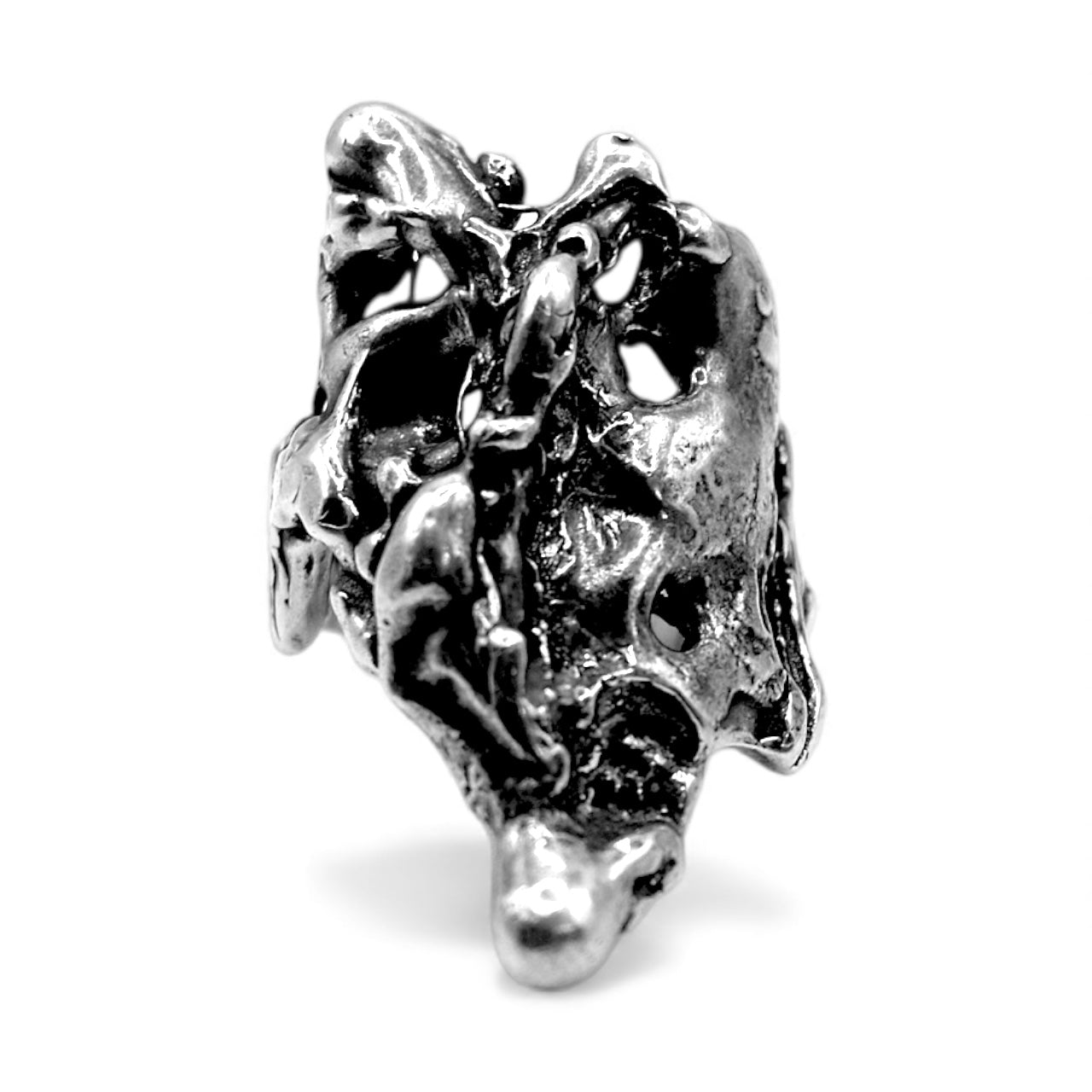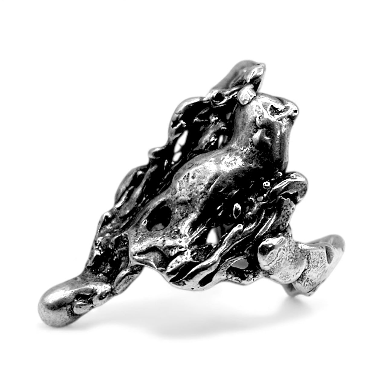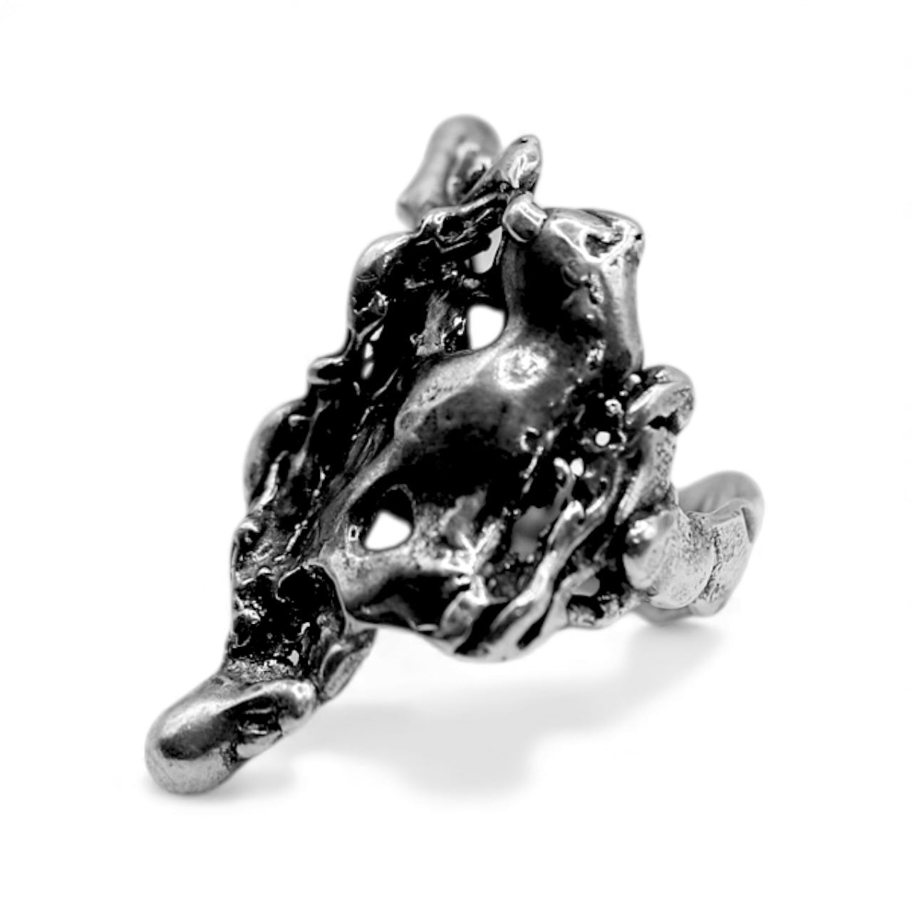 This version is entirely new—but it carries the ghost of the original inside it. A molten, brutalist sculpture forged from the remnants of another vision. Crafted in oxidized .925 sterling silver, the Revise Ring is a wearable relic of creative destruction—proof that breaking something apart is sometimes the only way to find what it was meant to become.