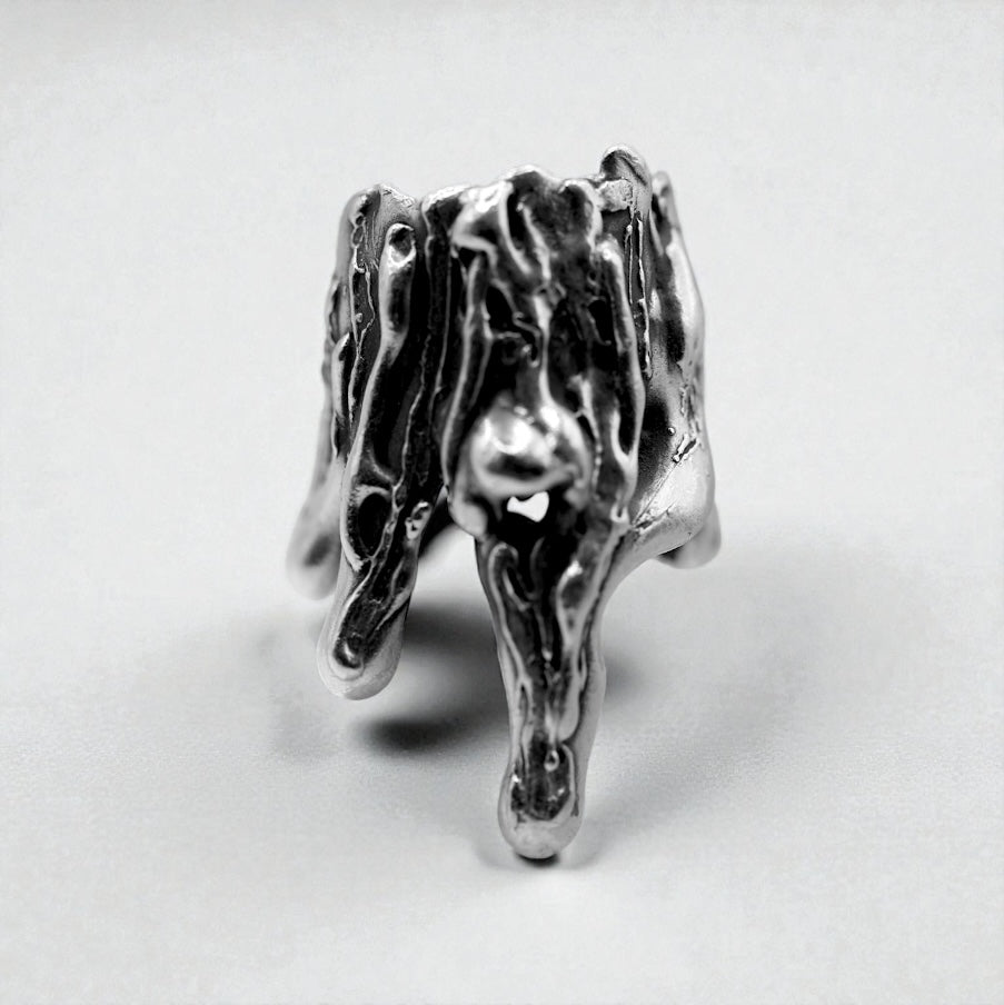 Handcrafted in oxidized .925 sterling silver, Metal Tears drips with intentional form—sculptural, asymmetrical, and full of motion. It holds space for the depth you’ve been through, without demanding you stay there.